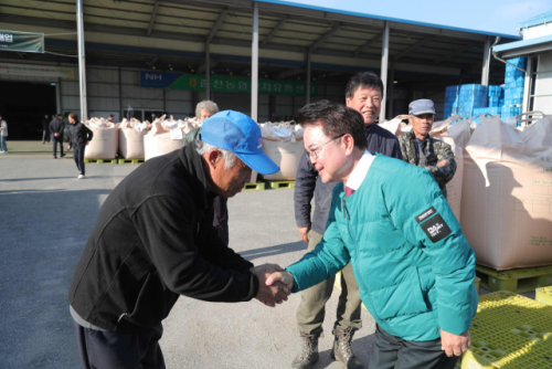 육동한 춘천시장은 4일 신사우동 농산물산지유통센터를 찾아 올해산 공공비축미 매입 현장을 점검하고 농업인들을 격려했다.