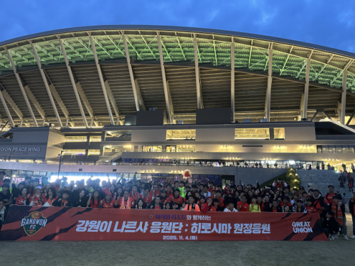 강원FC가 2025~2026 AFC챔피언스리그 엘리트(ACLE) 리그스테이지 원정 경기를 위해 일본 히로시마에 입성한 4일, 경기장은 이른 오후부터 강원 팬들의 열기로 들썩였다.