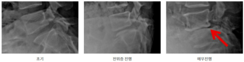 허리를 뒤로 젖히거나 오래 서 있을 때, 앉아 있다가 일어설 때, 자세를 바꿀 때 통증이 심해지는 것이 특징이다. 척추뼈가 앞으로 밀린 상태에서 허리를 펴면 척추 관절과 신경이 더 압박되기 때문이다.