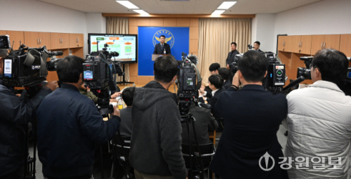 강원경찰청이 6일 기자실에서 필리핀 거점 5조 3,000억원대 도박사이트 제작 관리 일당 검거 관련 브리핑하고 있다. 신세희기자