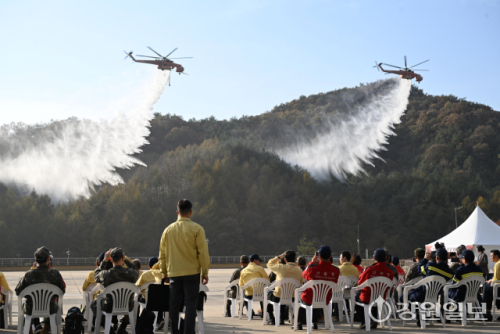 이 대통령은 6일 원주에 위치한 산림청 산림항공본부를 찾아 산불진화 관·군 합동훈련을 참관하고 진화 장비 및 대응체계를 점검했다.