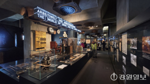 ■문화로 이어진 산업의 기억=샤프트 12 구역 내부에는 루르 지역의 자연사·문화사·산업사를 통합적으로 다루는 ‘루르박물관(Ruhr Museum)’도 자리한다. 과거 세척장 건물을 리모델링해 만든 이 박물관은 지하에서 지상으로 올라갈수록 시대가 흐르는 구조를 갖고 있다. 지하층에는 공룡과 식물, 해양 생물 화석 등 자연사 전시가, 상층부에는 석탄 산업의 역사와 광부들의 삶, 산업 쇠퇴 이후 도시 변화를 다룬 산업·사회사 전시가 이어진다.