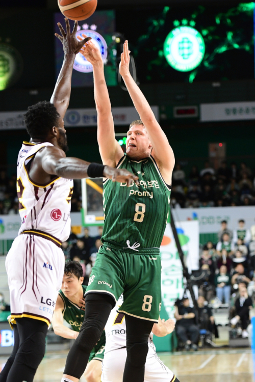 원주DB는 8일 원주DB프로미아레나(원주종합체육관)에서 열린 2025-2026 LG전자 프로농구 정규리그 창원LG에게 66대59로 승리했다. 덕분에 DB는 LG, 안양 정관장과 공동 1위에 올랐다.