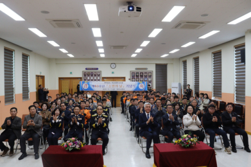 제63주년 소방의 날 기념행사가 지난 7일 정선소방서 강당에서 유영민 정선소방서장을 비롯한 최승준 정선군수, 전영기 정선군의장 등 기관단체장과 소방공무원 등이 참석한 가운데 열려 소방공무원 20명과 일반 주민 12명에게 유공자 표창을 수여했다.