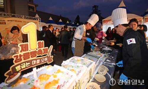 제1회 강릉 빵 축제 '빵 굽는 마을, 오죽' 개막식이 7일 오죽한옥마을 및 율곡국학진흥원 일대에서 김홍규 강릉시장, 강희문 강릉관광개발공사 사장, 박원재 율곡국학진흥원장, 나영진 강릉상공회의소 회장, 최종봉 강릉시번영회장을 비롯한 관계자들이 참석한 가운데 열렸다. 강릉=권태명기자