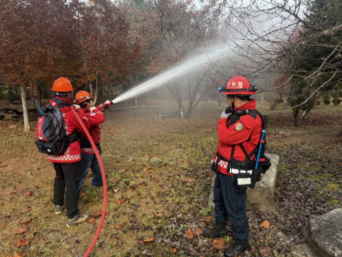 또 산불진화차량의 운용법을 익히고, 실제 산불현장을 가정한 화선 정리 및 잔불 정리 훈련을 통해 실전 대응 능력을 강화했다.