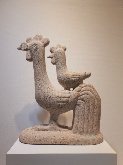 돌이라는 재료를 다루면서도 그의 조각은 차갑지 않다. 거친 질감 속에서도 온기 가득한 생명력이 넘치고 단단한 돌덩이는 작가의 손끝으로 생명을 불어넣는다. 꽃이 핀 나무, 마주 선 새 한 쌍, 낮은 자세의 호랭이 등 작품들은 자연과 인간의 조화로운 공존을 이야기한다.