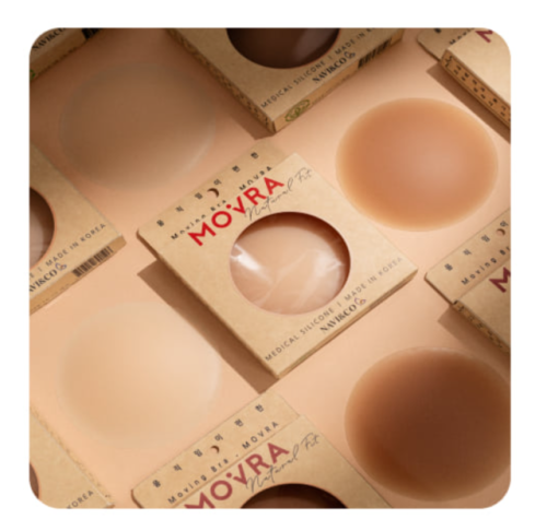무브라 니플패치는 친환경 니플패치 제품이다. 점착필름만 교체하면 되고 피부접착면은 의료용 실리콘겔을 사용해 피부자극을 최소화 했다. 무브라 브라패치는 하단을 안정적으로 잡아주고 움직일 때 편의성을 높이기 위해 다머니퓨레이션 공법으로 제작돼 인기를 끌고 있다.