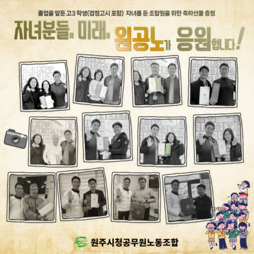 문성호 원공노 위원장은 “예비 성인 자녀를 둔 조합원님들을 열렬히 응원한다”며 “조합원 여러분이 원공노의 경쟁력임을 항상 마음에 새기고 조합활동에 매진할 것”이라고 말했다.