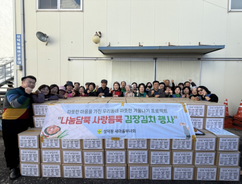 성덕동 새마을부녀회(회장:김명희)는 겨울철 지역 주민들의 생활 안정을 돕고, 따뜻한 공동체 문화를 확산하기 위해 11일부터 12일까지 이틀간 성덕동주민센터에서 김장김치 200상자(2,000㎏, 924만 원 상당)를 담가 저소득층, 사각지대 가구, 경로당 등에 전달했다.