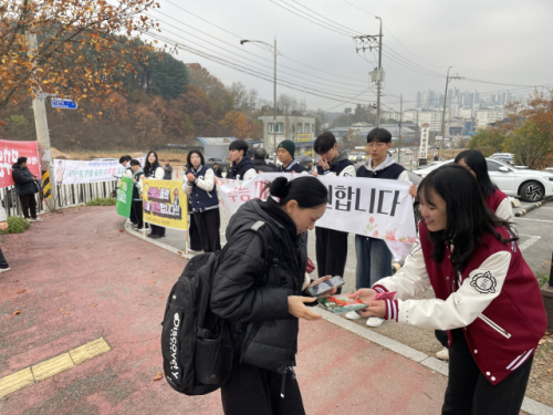 학부모 박은경(48)씨는 “아침에 5만 원을 쥐여주며 ‘시험 끝나면 맛있는 거 사 먹어라’고 말했다”며 “그동안 묵묵히 노력해온 우리 딸이 정말 자랑스럽다”고 했다. 또다른 학부모 이혜진(50)씨도 “일교차가 커 걱정이 많았지만 학생들의 응원 덕에 오히려 온기가 느껴졌다”며 “우리 아이가 후회 없이 시험을 마치고 왔으면 좋겠다”고 말했다.