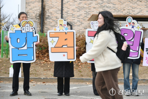 화천군 교육복지과와 화천교육지원청 임직원을 비롯해 학부모들은 시험일인 13일 고사장인 화천고 앞에서 수험생들에게 뜨거운 응원을 보냈다.