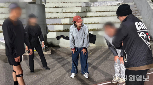 12일 오후 8시 강원대 대운동장. 춘천에서 규모가 가장 큰 러닝크루인 ‘춘천러닝크루’ 정기모임에 참여하는 사람들이 운동복 차림으로 하나둘 모여들었다. 인사를 나눈 뒤 각자 페이스에 맞춰 4개 그룹으로 흩어졌다. 기자는 러닝 초보 그룹에 합류해 4㎞를 1㎞당 7분30초 페이스로 들어오는 코스에 도전했다.