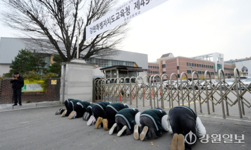 [포토뉴스]시험장 향해 큰절 하는 후배들
