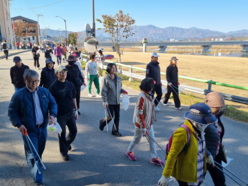 참가자들은 코스를 걸으면서 주변 쓰레기를 줍는 이른바 플로킹 활동을 하면서 남대천 주변 환경도 가꾸고 건강도 지키는 의미 있는 시간을 가졌다.