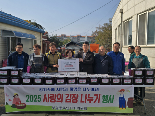 동해시 북평동주민자치위원회(위원장:이학범)는 지난 13일 북평동행정복지센터 마당에서 ‘2025년 북평동 사랑의 김장 나누기’ 행사를 개최했다.