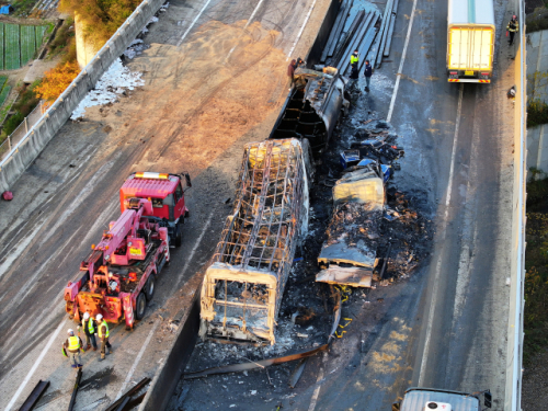 사고 당시 일부 차량에서 발생한 화재는 모두 진화됐지만 현장 수습에 시간이 걸리면서 주변 일대 양방향 통행이 3시간째 제한되고 있다.
