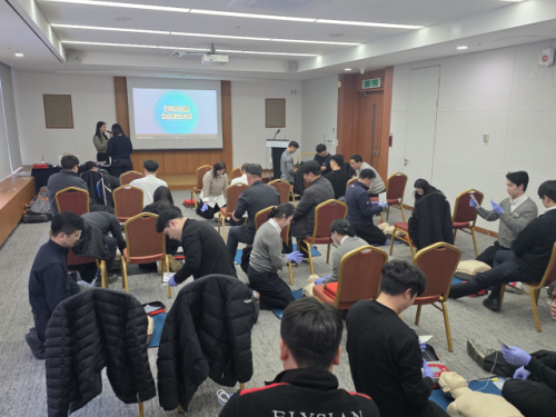 이날 강원 심폐소생 교육센터 전문 교육 인원이 방문, 응급상황 발생을 대비한 심폐소생술, AED 사용법 등에 대해 교육했다.