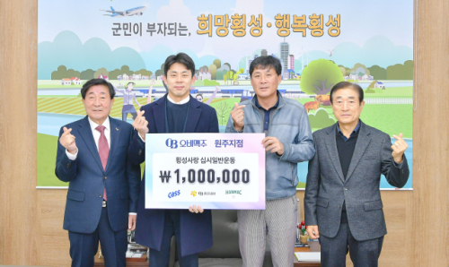 ◇오비맥주 원주지점(지점장:한경진)은 18일 횡성군청을 방문해 '횡성사랑 십시일반운동'에 성금 100만원을 기탁했다.