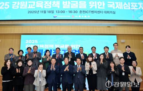 2025강원교육정책 발굴을 위한 국제심포지엄 18일 춘천ICT벤처센터에서 신경호 강원자치도교육감, 김영래 강원일보전무이사, 시·군 교육장 및 발제자, 토론자 등이 참석한 가운데 열렸다. 박승선기자2025강원교육정책 발굴을 위한 국제심포지엄 18일 춘천ICT벤처센터에서 신경호 강원자치도교육감, 김영래 강원일보전무이사, 시·군 교육장 및 발제자, 토론자 등이 참석한 가운데 열렸다. 박승선기자