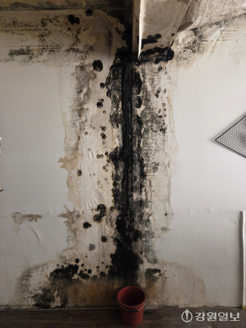 지하 1층~지상 2층에 마련된 상가들 역시 상황은 마찬가지였다. 비가 올 때마다 물이 새는 탓에 지난달 역대 최장 가을장마 피해를 고스란히 맞았다. 빗물로 인해 상가 벽에는 누군가 커다란 붓으로 먹칠을 해놓은 것처럼 곰팡이가 피어 있었다.