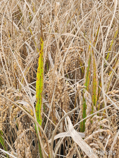 양양에서 6,000평 벼농사를 짓는 박주욱(64)씨는 전체 논 중 20%가 벼 깨씨무늬병 피해를 입었지만 보상 조건을 충족하지 못해 피해 신고조차 못했다. 박씨는 “피해 논 사진까지 일일이 찍어뒀지만 정부 보상 기준에 맞지 않는다는 설명을 듣고 결국 신고를 포기했다”며 “농협에서 진행하는 자체 수매에 벼를 넘겨 손실을 조금이라도 줄여볼 생각”이라고 토로했다.