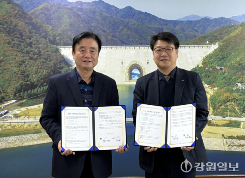 【화천】화천군과 수자원공사평화의댐지사는 19일 화천군청에서 댐주변지역 공부방 지원 협약을 체결했다.