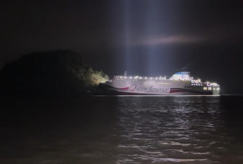 전남 목포해양경찰서에 따르면 이날 오후 8시 17분께 전남 신안군 장산도 남방 족도에 2만6천546t급 여객선 퀸제누비아2호가 좌초했다는 신고가 접수됐다.
