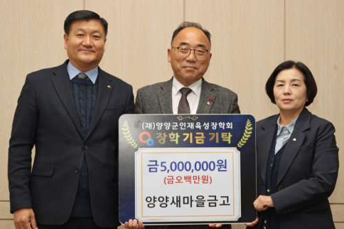 양양새마을금고(이사장:박종현)은 20일 양양군청을 방문해 탁동수 양양군수권한대행에게 인재육성장학기금 500만원을 전달했다.