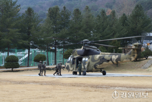 대량사상자 관리 훈련 중에는 의무 인력에 의한 중상자 응급 후송 훈련도 체계적으로 진행됐다. 육로로 차량 후송이 불가한 환자가 발생하자 사단은 상급부대로 후송 헬기를 요청했고, 수리온(KUH-1) 헬기가 도착해 환자를 신속하게 후송했다.