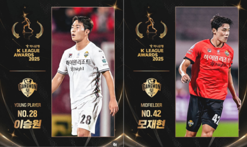 강원FC의 이승원과 모재현이 ‘하나은행 K리그 2025 대상 시상식’ 주요 부문 후보에 나란히 이름을 올렸다.