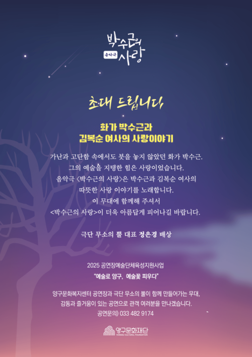 【양구】양구문화재단은 강원문화재단과 함께 양구의 대표 화가 박수근 화백의 사랑과 일대기를 그린 음악극 ‘박수근의 사랑’을 선보인다.