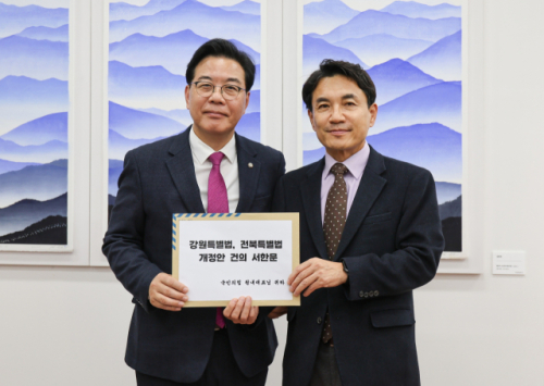 이에 김진태 지사는 이날 국회에서 김병기 더불어민주당 원내대표, 송언석 국민의힘 원내대표를 각각 만나 강원특별법 3차 개정안 촉구 항의서한을 전달했다.