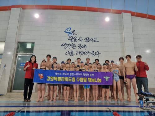 전국 최강 강원특별자치도청 소속 수영선수들이 지난 20일 춘천스포츠클럽 수영 마스터반 선수들을 대상으로 재능기부 특별 레슨을 진행했다.