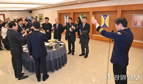 최현석 강원경찰청장은 “동곡상 수상자들처럼 지역사회를 위해 헌신하고 희생하시는 분들의 노력이 있기에 강원도는 앞으로의 성장이 더 기대된다”며 ‘강원도의 힘!’이라는 건배사로 박수를 받았다.