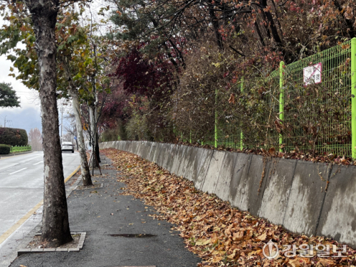 영하의 날씨로 초겨울이 성큼 다가온 27일 오후 강원특별자치도청 앞 광장 교차로 100여m에 이르는 도로변에는 플라타너스 낙엽이 수북이 쌓여 있었다.