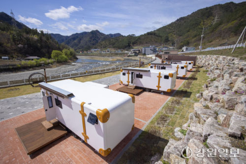 ■국민여가 캠핑장=가곡 유황온천 바로 옆에 조성된 ‘국민 여가 캠핑장’은 지난 2023년 2월부터 본격 운영에 들어갔다. 캠핑 시설 15동(카라반 5동, 돔 하우스 8동, 타이니 하우스 2동)을 조성한 가족 단위 캠핑에 특화돼 있는 곳이다.