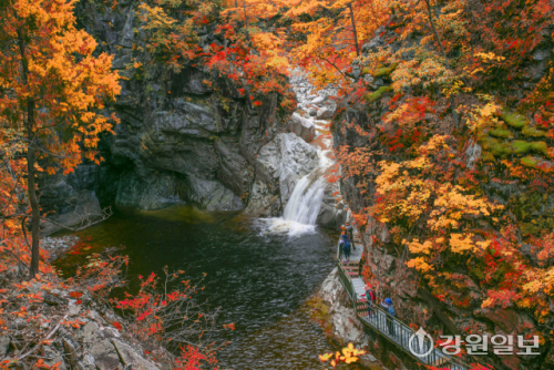 ■덕풍계곡=덕풍계곡은 가을여행지 중 단풍 명소 트레킹 코스로 유명하다. 덕풍계곡(석개재&용소폭포) 일대가 병풍처럼 둘러싸인 산세가 화려하고, 완만한 내리막과 데크길, 산길, 숲길, 폭포 등 다양한 자리에서 단풍을 감상할 수 있는 코스로 구성돼 있다. 붉게 물든 단풍의 절경을 만끽하며, 자연의 신비와 장엄함을 동시에 느낄 수 있는 청정 숲길로 유명세를 타고 있다. 석개재~덕풍계곡~방축소~제1용소폭포~제2용소폭포~덕풍마을 구간 10㎞이며, 3시간30분 정도가 소요된다.