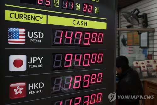 같은 시각 원/엔 재정환율은 100엔당 941.23원으로, 전 거래일 오후 3시 30분 기준가인 940.49보다 0.74원 상승했다.