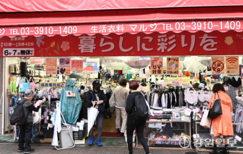 지난 6월 방문한 도쿄 도심 스가모역 인근의 한 상점가는 비 오는 날씨에도 불구하고 상점을 찾은 고객들로 인산인해를 이뤘다. 상점가에서 쇼핑을 즐기고 있는 주 고객층은 보행기를 밀고 다니거나 지팡이를 짚고 있는 백발의 노인들이었다. 각 상점별 매대에는 빨간내복, 건강식품, 지팡이, 보청기 등 어르신들을 위한 상품이 가득했다. 이곳은 일명 ‘할머니들의 하라주쿠’라고 불리는 노인 상점 거리 ‘스가모 지조도리 상점가’다.
