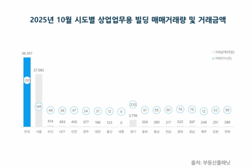 정수민 부동산플래닛 대표는 “10월 상업업무용 빌딩 시장은 거래량과 거래금액이 전월 대비 모두 감소했다”며 “금리 인하 지연의 영향으로 투자 심리 회복과 실질적인 가격 조정 속도가 둔화된 모습을 보이고 있다”고 설명했다.
