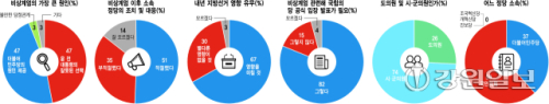 2일 본보의 설문조사에 응한 110명의 도내 도·시·군의원 가운데 67%(74명)가 비상계엄 여파가 내년 지방선거에 영향을 미칠 것이라고 응답했다. '별다른 영향이 없을 것이다'는 30%(33명), '모르겠다'는 3%(3명)였다.