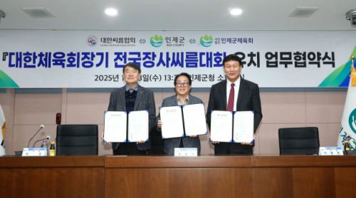 최상기군수는 “이번 협약을 통해 전통 스포츠인 씨름대회가 인제군에서 지속적으로 열릴 수 있는 기반을 마련했다는 점에서 의미가 크다”며 “대한씨름협회, 체육회 등 유관기관과의 긴밀한 협력을 바탕으로 대회가 안정적으로 운영되도록 힘쓰겠다”고 말했다.