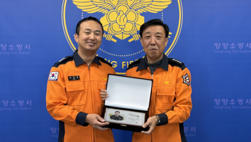 양양소방서(서장:강복식)는 3일 서장실에서 2025년 하반기 자랑스러운 양양소방관으로 선정된 현장대응단 소방교 김종협 반장(사진 왼쪽)에게 표창을 수여했다.