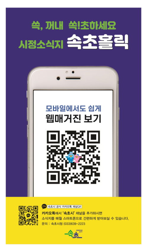 온라인 구독을 원하는 시민은 속초시 카카오톡 채널을 추가하면 매월 발행 알림을 받고 모바일 정기 구독할 수 있다.