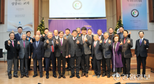 춘천기독교장로연합회장 이·취임감사예배가 7일 소양성결교회에서 열려 한택수 장로(춘천온누리교회)가 이임하고, 강홍구 장로(소양성결교회)가 취임했다.
