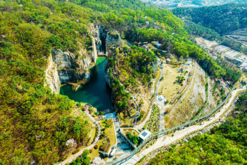 ■ 포천아트밸리의 탄생=사방이 산지로 둘러싸인 포천은 중생대 화산폭발의 흔적이 남아 예로부터 질 좋은 화강석 생산지로 유명했다. 일명 ‘포천석’이라 불리우는 화강석은 고급 건축 마감재로 쓰였다. 포천석 생산지 중에서도 신북면은 특히 최상품 산지로 인정을 받은 덕에 1980년대 말까지 포천석 채굴로 호황을 누렸다.