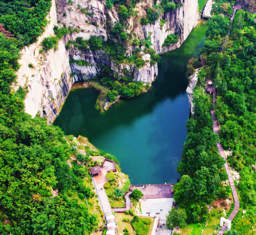 포천아트밸리에서 가장 유명한 볼거리인 ‘천주호’는 인공호수다. 화강석을 캐다 생긴 울퉁불퉁 대형 구덩이가 모티브가 됐다. 이곳에 물을 담으면 호수처럼 보일 것이란 아이디어로 시작됐다. 실제로 구덩이를 다듬어 지하수와 빗물을 채우니 멋진 호수가 만들어졌다. 마치 원래 있던 호수처럼 자연스러운 아름다움을 발산했다. 호수는 채굴로 산자락이 깎여나간 수직 절벽과 절묘한 조화를 이뤄 생각지 못한 자연미를 뿜어낸다.
