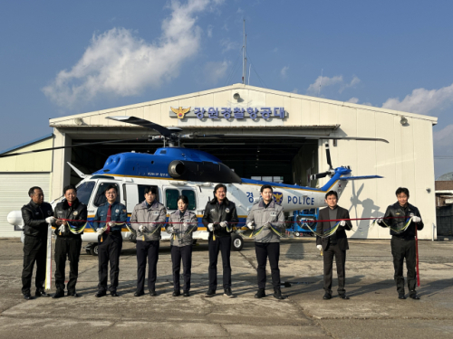 강원경찰청은 11일 최고 출력 1,850마력에 엔진 2개가 장착된 14인승 중형급 참수리(KUH-1P) 취항식을 갖고 임무에 투입했다. 강원도는 전국 산악지의 35%를 차지하는 험준한 산악지형과 계절별 강풍·급변 기상이 빈번한 기상 난류 지역으로 꼽혀 산악 구조·재난·대테러 대응에 항공 전력 중요성이 크다. 특히 산불, 폭설, 실종 사고 등이 자주 발생하고 농어촌 지역이 넓게 분포해 교통·치안 사각지대가 존재, 항공 전력 강화의 필요성이 꾸준히 제기됐다.