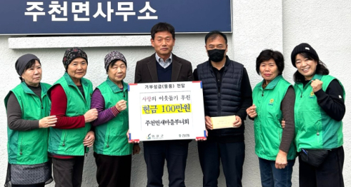 영월군 주천새마을부녀회는 지난 10일 주천면사무소를 방문해 생활형편이 어려운 이웃한 성금 100만원을 기탁했다.